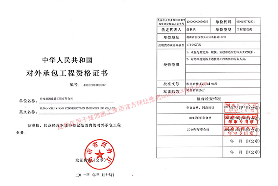 對外承包資質(zhì)證書