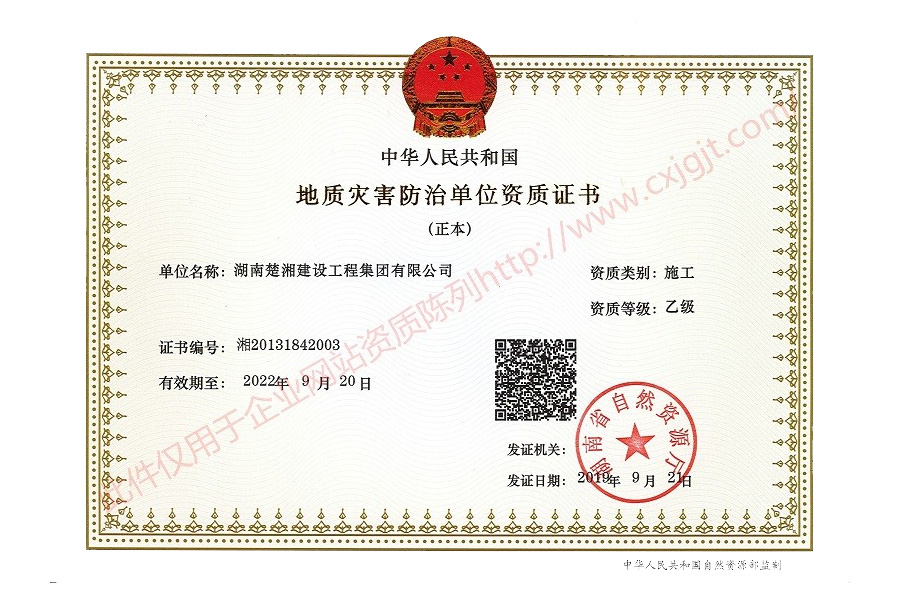 地質(zhì)災(zāi)害防治單位資質(zhì)證書(施工)